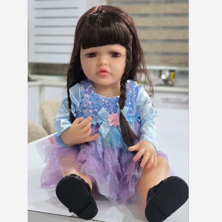 عروسک تماگوشتی (سیلیکونی) سنسوردار دارای سه حالت گریه خنده و خواب دهن مگنتی موهای کامل طبیعی