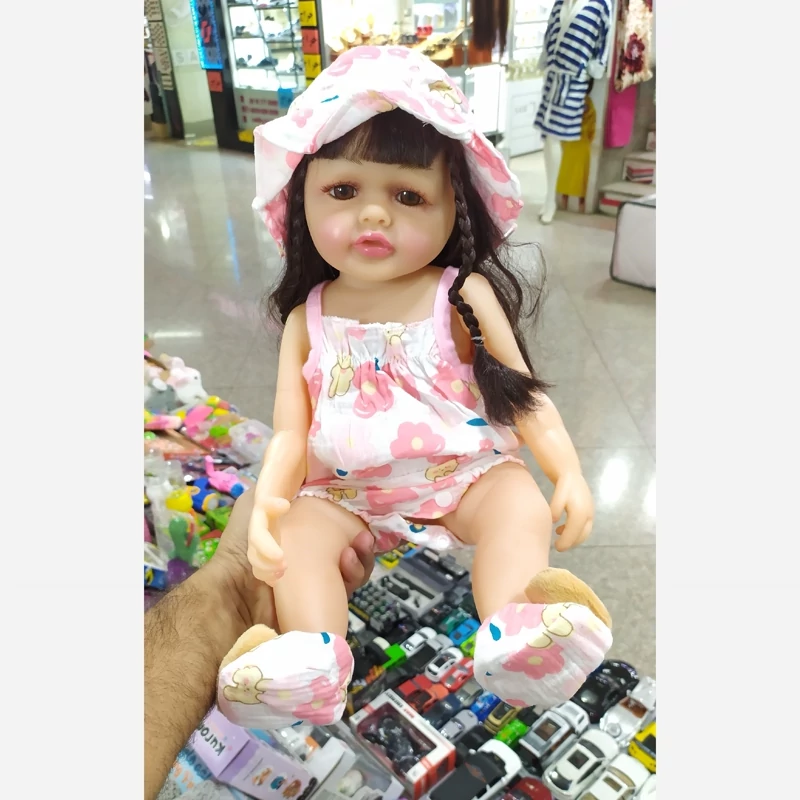 عروسک تماگوشتی (سیلیکونی) سنسوردار دارای سه حالت گریه خنده و خواب دهن مگنتی موهای کامل طبیعی